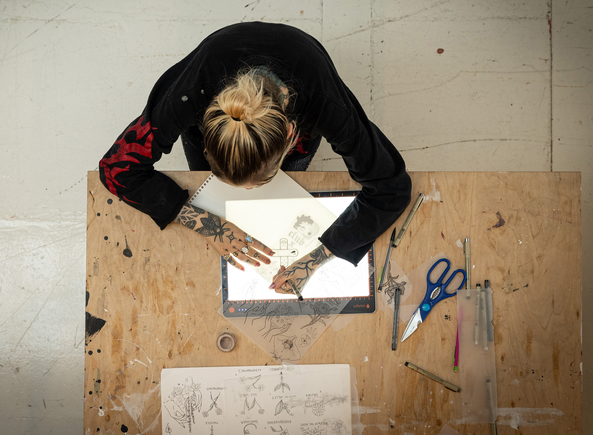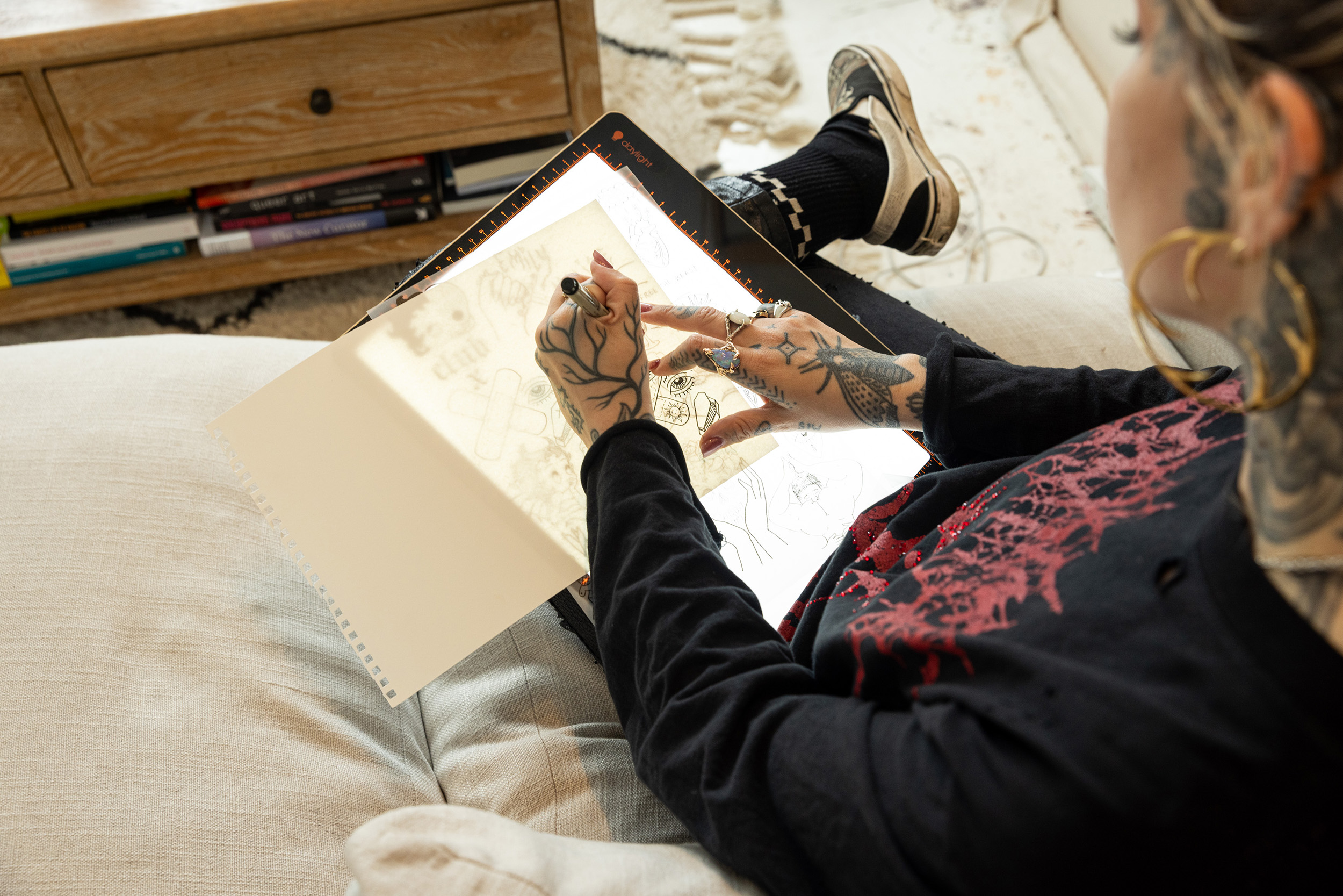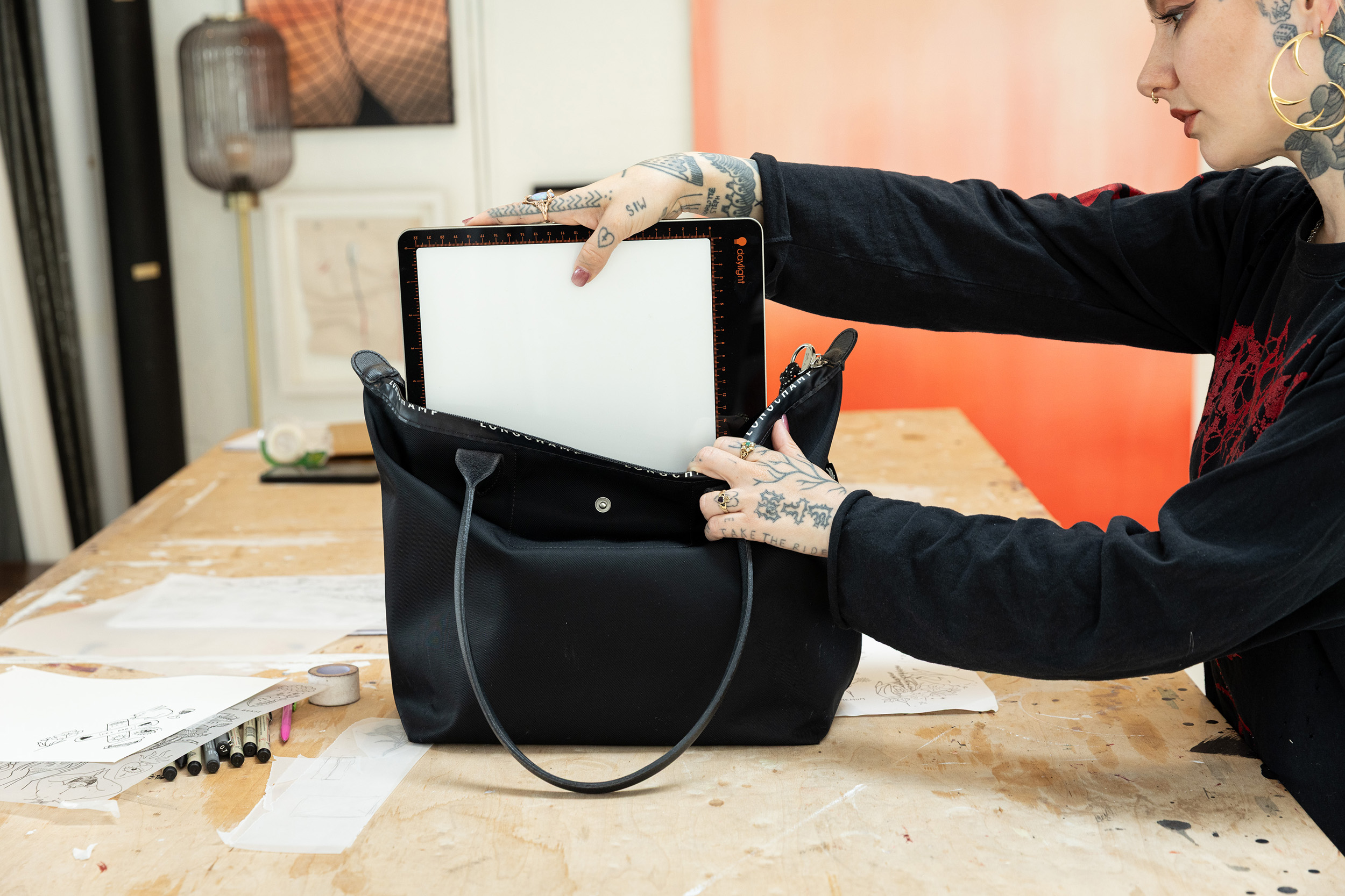 Le Tabla Go est un pavé lumineux entièrement portable, rechargeable par USB, conçu pour les artistes et offrant jusqu'à 5 heures d'éclairage continu. Au format A4, sans fil et léger, il est facile à transporter partout où l'inspiration frappe. Doté d'un boîtier en aluminium solide et d'une surface de traçage résistante et anti-rayures d'une dureté A6, notre bloc-notes offre une durabilité maximale lors de la réalisation de croquis. Il contient des LED ultra lumineuses de 6 000 K pour une vraie précision des couleurs et un variateur d'intensité à trois niveaux, qui permet de contrôler et d'ajuster la diffusion régulière de la lumière en fonction du grammage du papier ou de l'épaisseur du tissu. Utilisez le bord ligné (pouces et centimètres) pour plus de précision lors de vos travaux de bricolage ou de traçage.
