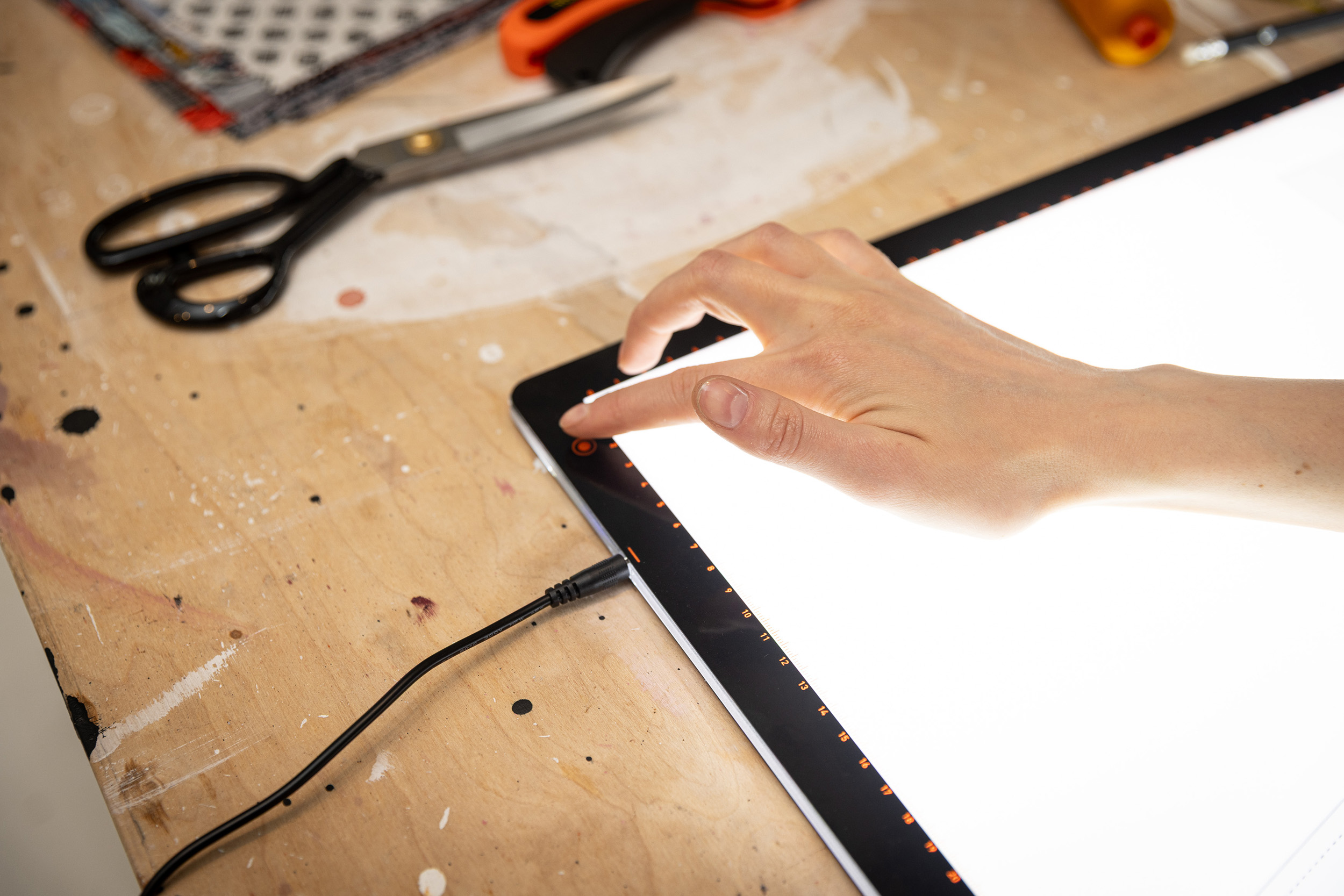 Le Wafer Lightpad est l'outil indispensable pour le traçage, le désherbage et le quilting. Un pavé lumineux à LED pour une luminosité de haute qualité et uniforme d'un bord à l'autre, avec un IRC de 80+ pour une correspondance des couleurs à la lumière du jour lors du dessin ou du traçage. Le gradateur à 3 niveaux permet d'ajuster la lumière en fonction du grammage du papier ou de l'épaisseur du tissu, et le guide pratique de la règle (pouces et centimètres) permet d'obtenir une plus grande précision.