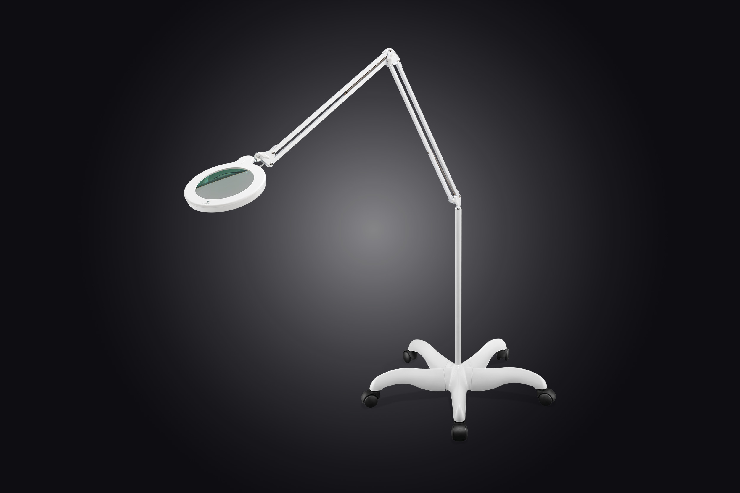 The Mag Lamp S delivers bright, shadow-free daylight illumination with clear, distortion-free magnification. Paired with the Floor Stand, it offers smooth height adjustment and stable positioning – perfect for precision tasks and extended sessions.