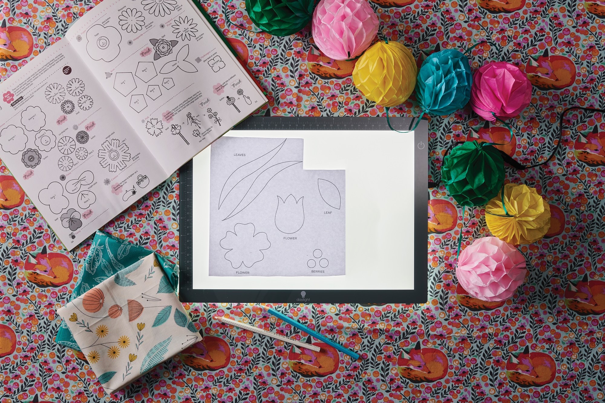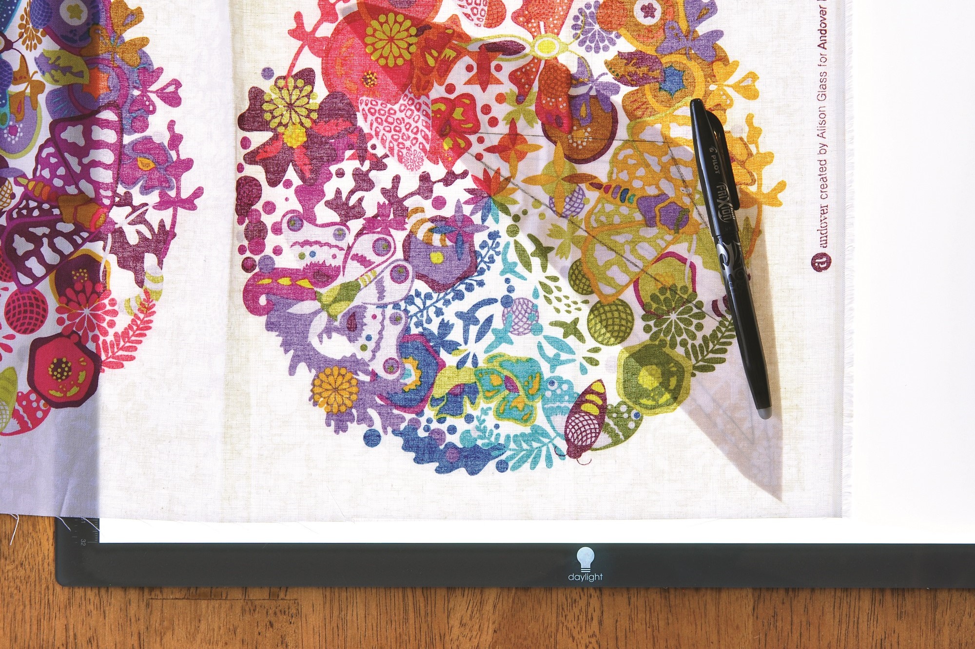 An LED lightbox for high-quality, even brightness from edge to edge, with 80+ CRI for daylight accurate colour matching when drawing or tracing. Dim the light to suit your paper weight and fabric thickness and use the handy ruler guide (inches and centimeters) for precision.